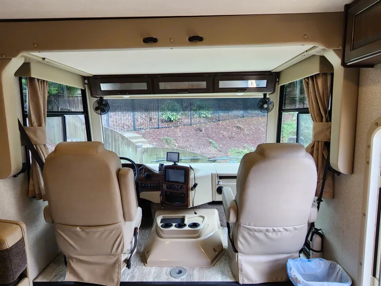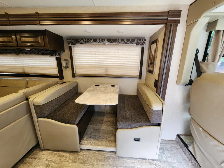 Get ready for the ultimate road trip in our luxurious 2020 Thor Hurricane motorcoach! With its spacious and stylish interior, you'll feel right at home on the open road. This motorcoach sleeps up to 8 people and features 1 and 1/2 bathrooms, perfect for long trips with a large group. This motorcoach boasts a variety of top-of-the-line features, including a full kitchen with a refrigerator, microwave, and stovetop, as well as a comfortable living area with a large TV. The bedroom offers a king-sized bed and plenty of storage space, with one full bathroom and an additional half bath. In terms of performance, the Hurricane has a reliable Ford Triton V10 engine and can sleep up to 8 people comfortably. It also comes with a generator, so you'll have all the power you need for a seamless camping experience. Take in the beautiful scenery from the comfort of your own motorhome and make unforgettable memories with your loved ones. Rent our 2020 Thor Hurricane motorcoach today and hit the road in style.What's included• 4 Chairs