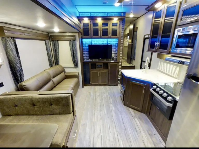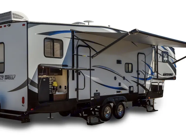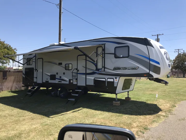 Beautiful 2018 Arctic Wolf. 3 slide outs, 2 bedroom, 1 1/2 bath. Full kitchen, sleeps 9. 3 TVs with satellite. Outdoor electric awning. Electric Auto leveling