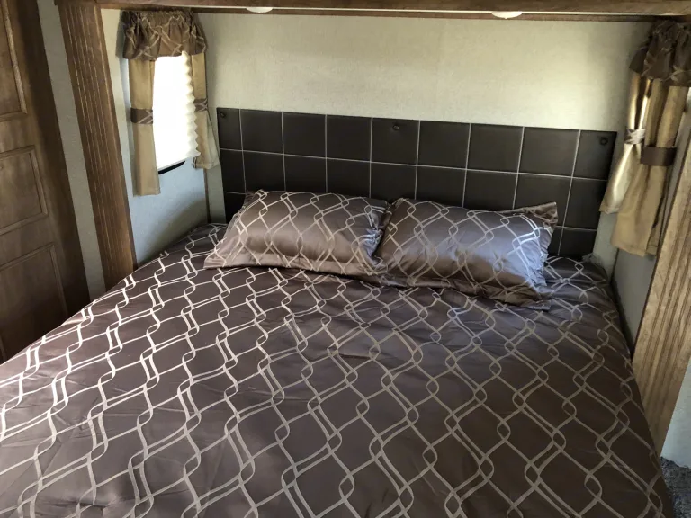 This is a great trailer. It has a master bed room. With a queen size bed And dresser. The bed room has a 34 in tv. Large closet It has a great living room with a 50in tv. Surround sound It has two recliner s and love seat that turns into a queen size bed. It has a dining table that turns in to a bed. It will sleep 6. It’s has plenty storage. It’s has gas stove and counter top three burner cook top. It has two refrigerator one inside and the other outside in the outdoor kitchen. With an outdoor tv. This is a great set up . For weekend at the lake or long trips around the world. Or a Sunday tailgating at the game.