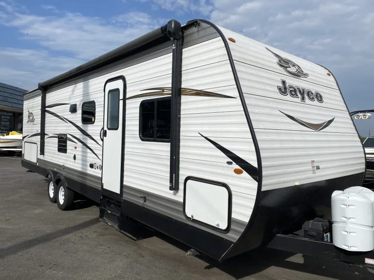 Immaculately kept smoke free camper! Outdoor kitchen with fridge, stove & sink, power adjustable awning with LED lighting. Surround sound IN & OUT! Large slide out for dinette & sofa.