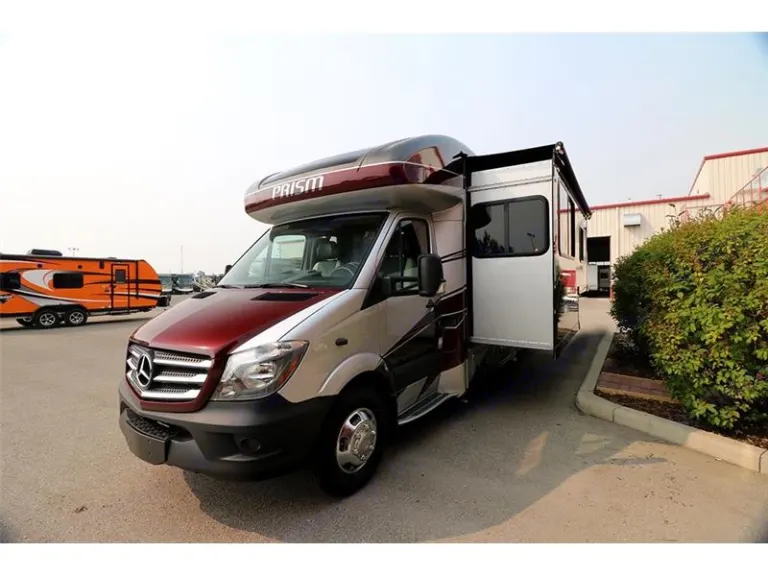 The 2018 Coachmen Prism Elite PRC24EF Class C motorhome features a Canadian Mercedes chassis 3 liter engine, 3.6 Onan LP generator w/auto transfer switch, Titanium full body paint, dual pane safety glass tinted windows, 15k low profile ducted A/C w/heat pump, 4-point hydraulic automatic levelers, side view camera's, upgraded folding walk around queen size mattress, armless power awning w/LED light strip, LED entry door light, touchscreen multiplex electrical management system, U-shaped booth dinette, overhead bunk with star gazing window, and exterior entertainment center.