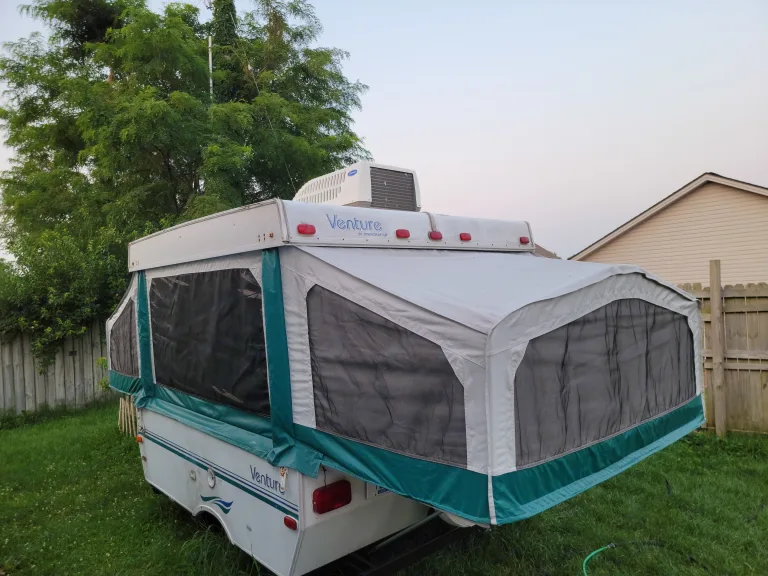 Your next adventure is waiting! What's includedWith the Venture you are going to enjoy a relaxing getaway. The Venture features air conditioning, a space heater for those cool nights, and guaranteed memories made. Provided will be a portable 5 gallon shower bag and head, and a 2 person tent for extra sleeping room. This is a nonsmoking camper but your fur babies are welcome. We only ask if they are not potty trained you use puppy pads or an equivalent to. Camper is older but in perfect working condition and is slowly being updated, visually, a little at a time. We recommend pulling by larger vehicles for safety. We want to help you make memories camping without completely roughing it. Our rules are not many because we want you to have stress free fun but please be mindful of cleanliness and pets. Please remove all trash, leftover foods, and personal items before closing up camper. RecommendationsOnly 4 miles from Kentucky Horse Park. 7 miles from Whispering Hills RV Park. 14.7 miles from Elkhorn Campground to name a few and for even more campground suggestions Caverun Lake is highly recommended. It is 81 miles from camper pick up site and Twin Knobs is recommended for campsite. Other things to note Final rules: