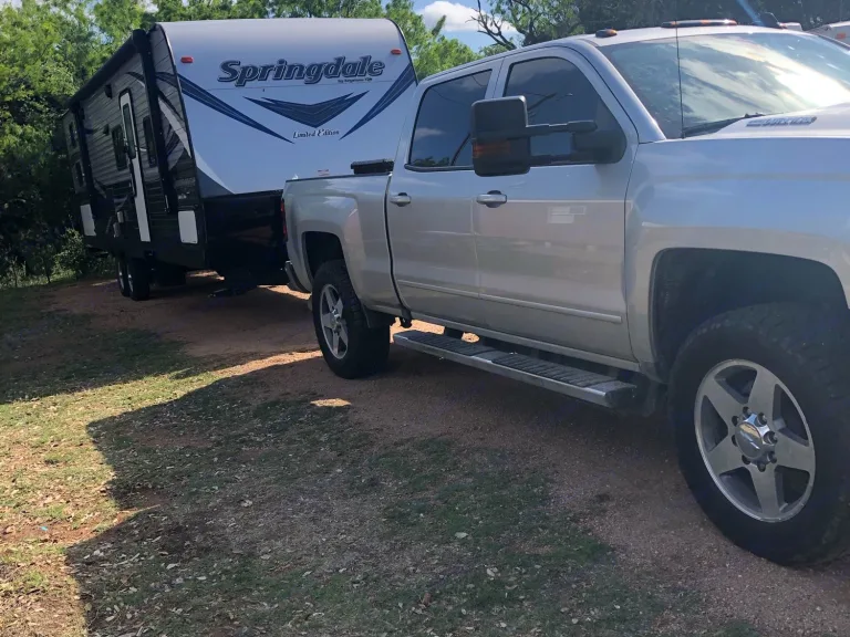 family friendly with queen bed in master, 2 full bunks, and convertable dinette. It has all the amenities needed to stay comfortable for a weekend get away to the lake or week long vacation to one of Texas' great state parks. Outdoor entertainment at rear with mini fridge and gas grill. Theater seating in living with indoor/outdoor stereo system. LED lighting under awning. By request, i can provide directv satellite service as well as an outdoor tv for the kids or sports fans if the antenna isn't enough.
