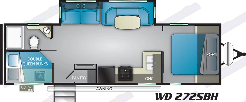 The 2725BH WIlderness is perfect for any type of trip! It has a full kitchen, full bathroom with shower, refrigerator, heater, a great stereo system. This trailer sleeps 9+ people very comfortably and has tons of beds! The trailer has bunk beds, dinette sleeper, sofa sleeper, and a queen front bedroom. This trailer is lite weight and can even be towed by a standard 1500 truck like a Chevy Silverado or Ford F150.