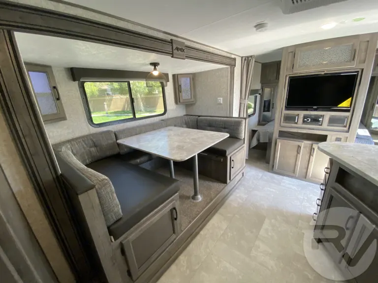 The Apex 245BHS is perfect for any type of trip! It has a full kitchen, full bathroom with shower, refrigerator, heater, a great stereo system. This trailer sleeps 6-7 people very comfortably and has lots of beds! It has a large slide-out with an open floor plan. This trailer is perfect for any family. This trailer is lite weight and can even be towed by a standard SUV like a Chevy Tahoe. We have been renting RVs in the Phoenix area for over 12 years and strive to have the newest and cleanest RV rentals in town.
