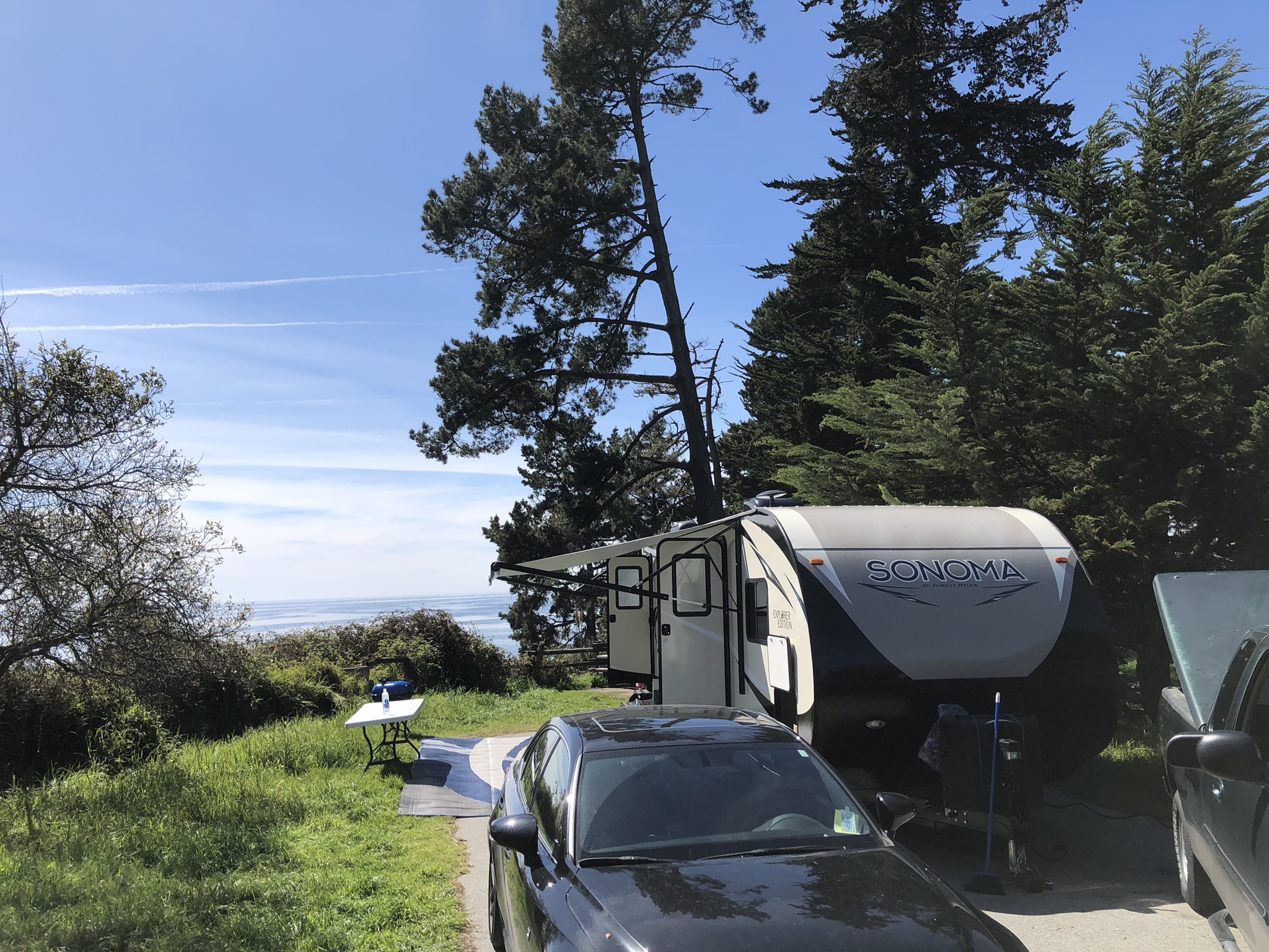 Delivery only which is $300. 5 night minimum. Pet fee $75 in add on section if you have pets. Looking to take your family glamping and not sure what all is needed? Neither did we at first. No worries we’ve got you covered. All you will need is food, clothing and toys. Below is a list of everything included, if it’s not in the trailer, you don’t need it for camping. Trailer comes equipped with the following: • A Private Master Bedroom, Queen size bed with upgraded Serta mattress, 3-inch memory foam and private TV • Large dinette that folds down into a bed, sleeps 2 • A couch that folds down, sleeps 1 • Full-size bunk beds, sleeps up to 4 and bottom bunk includes 3-inch memory foam• Full Bedding with pillows for all beds • Kitchen items including pots, pans, cooking utensils, cups, plates, French press coffee pot, silverware, griddle, marshmallow roasting kit, mixing bowl, cutting boards, strainers, etc. and soap • Bathroom equipped with towels, toilet paper, and soap • Large 43" flat screen Smart TV w/DVD player • Bluetooth stereo and 2 outdoor speakers • assorted board games. • 21 ft. power awning, power tongue and power Stabilizers • Dual batteries • Full water and sewer hook-up for campsites • Propane tanks filled • 5 folding camp chairs. Optional items available for a fee: • Generator **Needed for Dry Camping** • Delivery, set up, and breakdown of the trailer within 40 miles of Gilroy • Bike Rack on the back of the trailer for 4 bikes. • Additional metal chairs and 4’ table • Camp Chef 3-Burner stove with Griddle attachment (Connects to propane port at rear of trailer) • Dogs welcome (must be potty trained), sorry no cats ***There is to be NO smoking or vaping inside the trailer. Holding Tanks Fresh Water Tank Capacity 56.0 gal Total Gray Water Tank Capacity 71.0 gal. Total Black Water Tank Capacity 41.0 gal. 2 Propane Tanks with a total Capacity of 60 lbs. 200 lb. limit on top bunk. Trailer is 32 feet ball to rear bumper with 28 feet living space..What's includedDelivery only five night minimum.RecommendationsDelivery only five night minimum.Other things to noteDelivery only five night minimum.