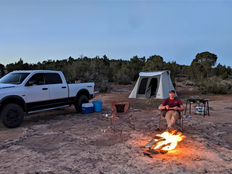 This Ram 2500 Power Wagon is a great camping/overlanding rig. Lifted, 4x4, over-sized tires, comfortable seating for six with plenty of cargo room. This Power Wagon comes equipped with a six-man canvas tent (easy set up), large cook stove/propane tank, two each: cots, sleeping pads, and camp chairs. Also comes with five gallon water jug, small table (the tail gait makes a great table also), Yeti cooler, and a camp box with basic cookware (pot/pans, utensils, cups, plates, coffee pot, etc.). Camp accessories are set up for two people, but the truck and the tent will accommodate up to six people.