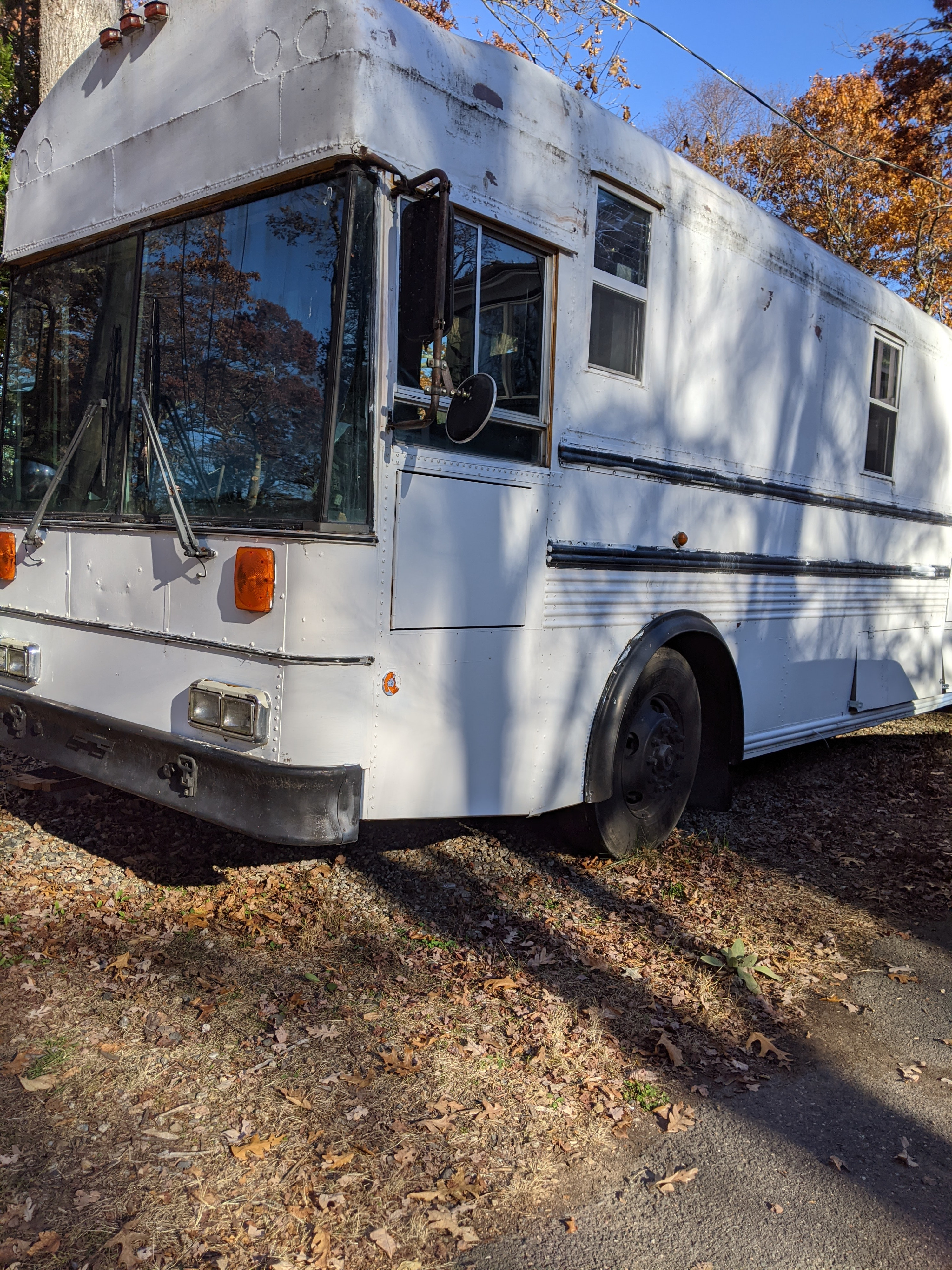 Amazing Skoolie conversion! Has everything you need for a fun time. Books and board games, cozy wood fireplace, extra storage for bikes or gear. If you want or need something,just ask! I'm sure we can accommodate you!What's includedCamping chairs, linens, bowls, plates, silverware, tp, basic food(tea) Other things to noteNo smoking or other recreational drugs.