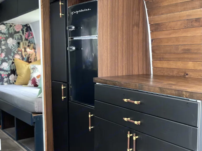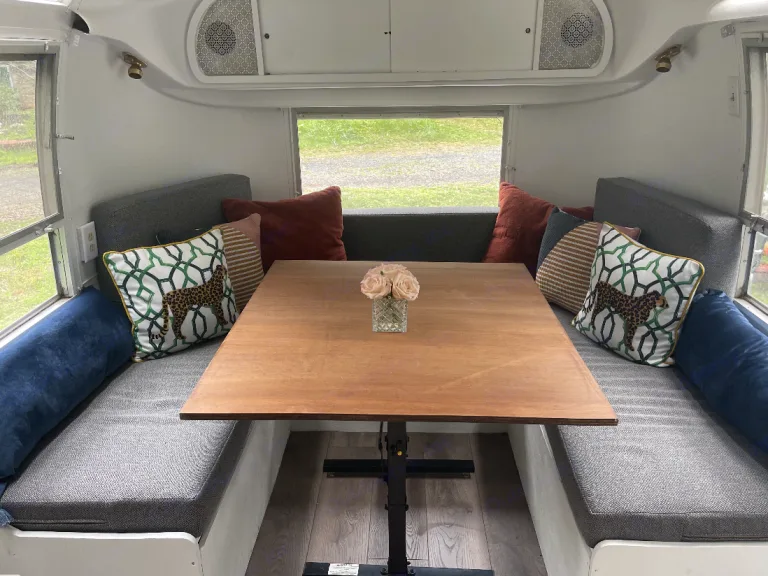 Don’t miss this one of a kind vintage airstream. It has been lovingly restored and updated with a more modern design mixed with the vintage character. As you enter there is a custom dinette to your right that converts into a spacious king sized bed. Turning to your left there is a new windowed kitchen with Furrion gas range, Frigidaire refrigerator and custom wood work.