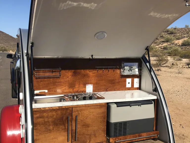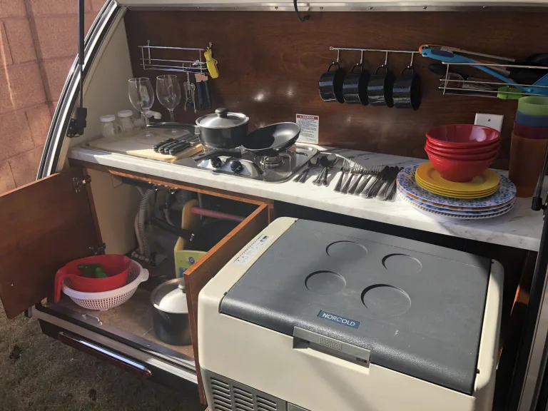 Ditch the Tent! This Little Guy will make your next road trip adventure unforgettable. It’s lightweight and so easy to tow I almost forgot it was there! Even though it’s compact this trailer has a lot to offer with a comfortable queen size bed inside, a TV, bluetooth player and radio. It has an outdoor kitchenette with running water and a two burner stove powered by propane.