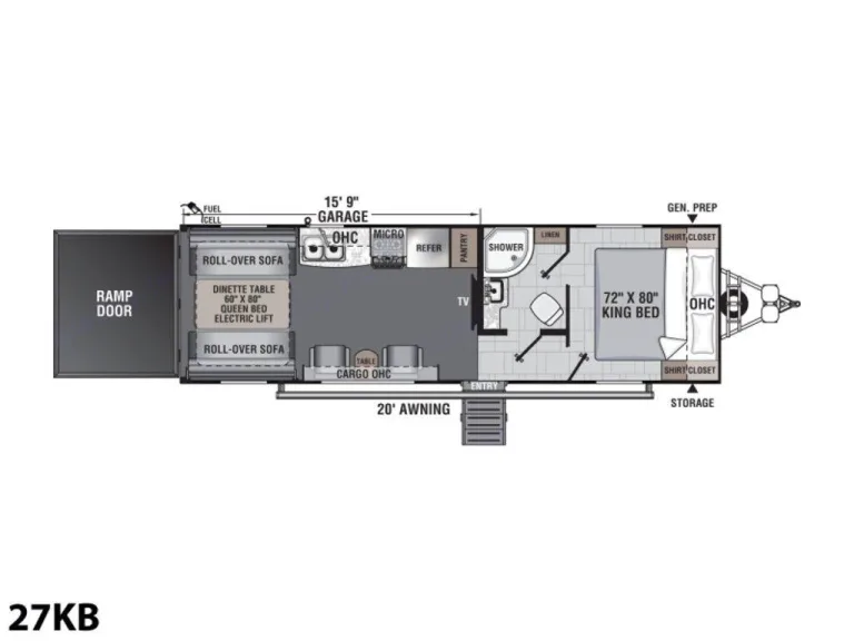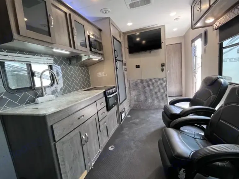 If you want some extra adventure while you are out at the campsite, then choose this toy hauler! This versatile recreational vehicle is designed for those who crave outdoor thrills without compromising on home-like amenities. The toy hauler section provides ample room for your favorite outdoor gear, be it ATVs, bikes, or kayaks, ensuring you can bring along all the tools for your adventure. Experience the thrill of the open road and the serenity of nature with this exceptional rental. Fits Can-Am DS-MAX!Pickup-Time: Between 1 pm - 4 pm