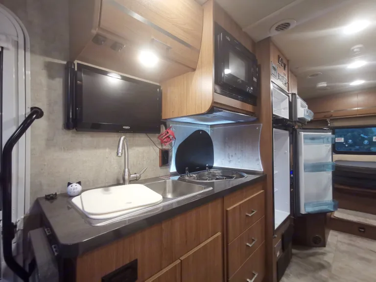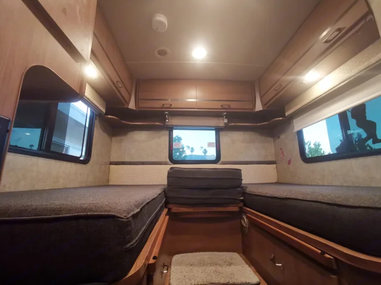The RV have slide out with a lot of storageHave a parking place for free where the RV is parked. You can park your car there if needed.Cleaned after every useEquipped with two twin-sized(32"x 74") bed and can be combined in to one Flex bed(74"x 87")A sofa that can be open in to a air cushion bed(50" x 75").Diesel van which mean you can drive for a long timeFlexible check in (after 9am) and check out(before 5pm) hours.I have some simple cooking utensils, and I use the dishwasher every time.