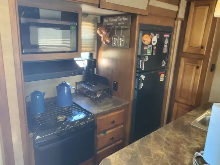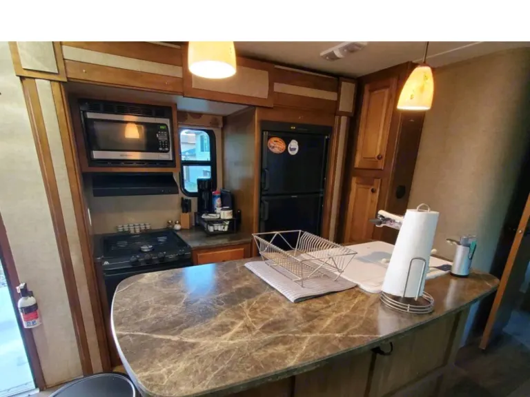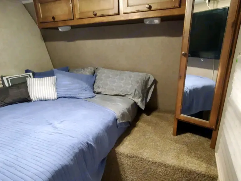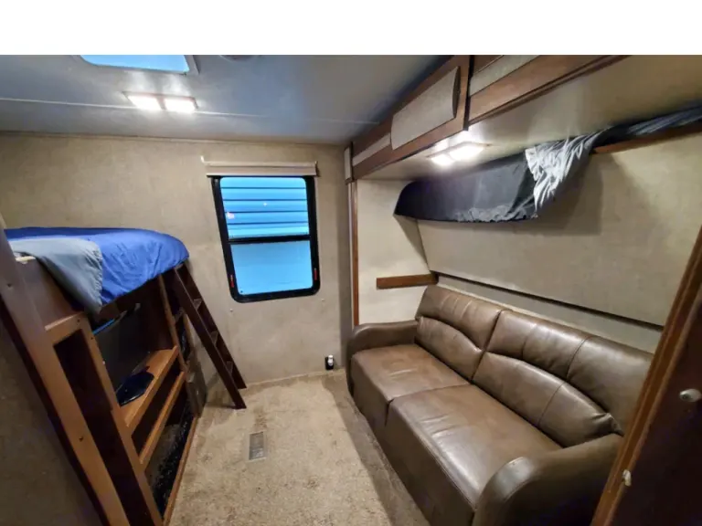 Beautiful large luxurious camper. Very spacious with 3 slideouts making it ideal for large family's or multiple adults. We usually take it to the property and live in it during the summer but figured we could rent it this year.This camper is large and needs a minimum 2500/250 diesel to pull it.Outside kitchen with range, food storage and water.8500 watt generator so you Never run out of power and new batteries for night time use running low power. (She's a bit loud)Front bedroom modified to fit full queen bed. 2 bunks in back and sleeper couch.Large living, sleeper couch and kitchen with island.55" tv in queen, 35" in living, 24" in bunk room.Available April to middle October for outdoor camping.What's includedSo much stuff, extra tents, chairs, air mattresses, bedding, full kitchen (pots, pans, plates, utensils), 3 tables for outside, propane smoker, propane fire pit, bikes.RecommendationsThis camper can go places most big campers won't. Other things to noteI usually work until 2 to 3pm ish and can deliver after. If you need it that am please book the previous night and it will be delivered and setup. Have a campsite you're renting? Please make sure it will fit.I've been an airbnb, rvezy host with it for years. Please enjoy this fully loaded fun camper.