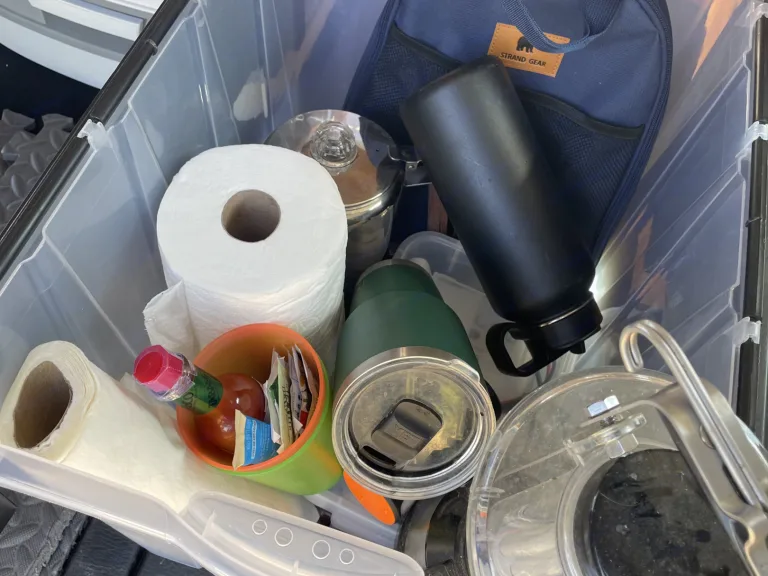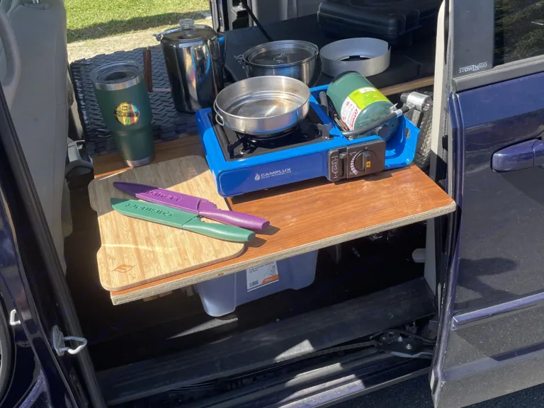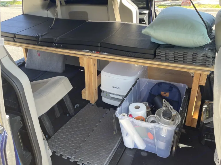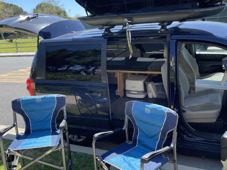 Find a campground or friend/family's house to drive the minivan fully outfitted with water, toilet, electricity (ecoflow) shower, lamp, stove, two bed and all camping utilities (silver ware, paper towels, first aid kid, etc.) all ready for you to camp! All you need is clothes, a nice sleeping bag and food/drinks.What's includedFirst Aid Kit, Hot Water Kettle, Water, Camping Chairs, blackout shades, etc.Turn on engine heater if you get too cold. Open window a bit to bring in cool air.RecommendationsEverything packed in there - first aid kit, water, silverware, flashlight, poncho, etc. All you you need is a nice sleeping bag.