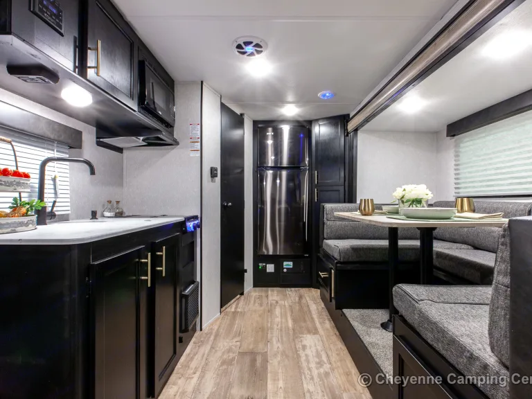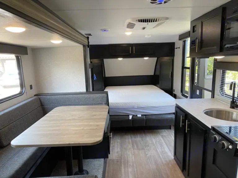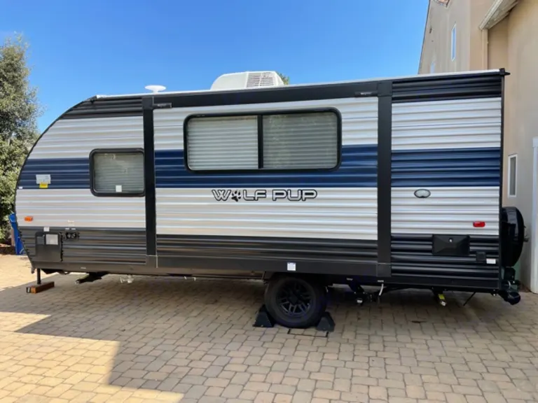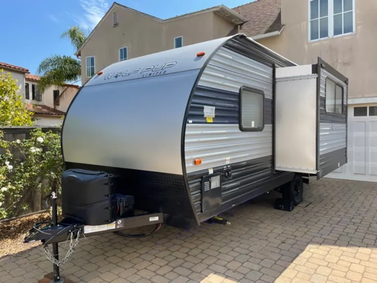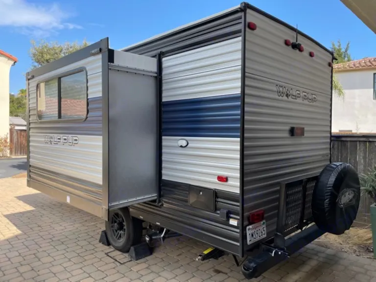 *This trailer is covered by an annual Commercial Renter's Insurance Policy paid for by the Owner.*Note: the awning is currently broken on this trailer and not usableForest River Cherokee Wolf Pup 16PF featuring lots of floor space by incorporating a Large slide-out dinette and front Queen Murphy Bed! The 16PF is super lite weight and can be towed by many vehicles or we can deliver. Note: Jalama delivery is $350.The Wolf Pup 16PF is very well equipped with AM/FM/Bluetooth stereo, ceiling mount subwoofer, exterior marine grade speakers, 4 stabilizer jacks, 11 cu. ft. refrigerator/freezer, 13,500 BTU AC, power awning w/ led strip, exterior courtesy/scare light, deluxe wheels, MORryde entry steps, outdoor refrigerator, 50 watt solar panel, and dual 6V RV batteries.Included IN Trailer:
