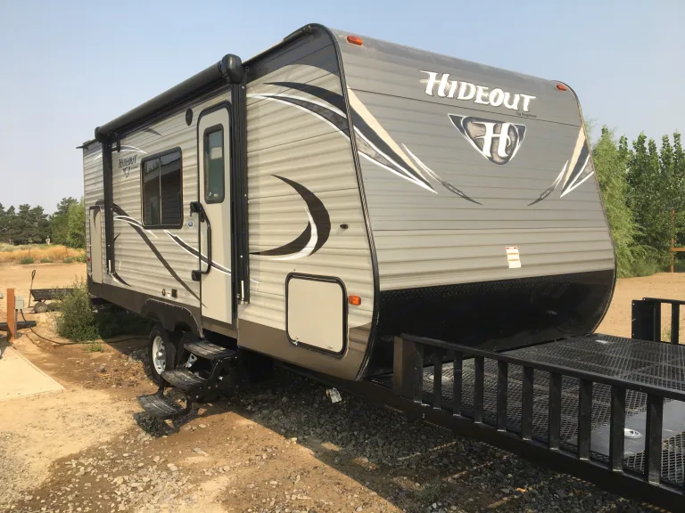 Brand new camper with all the goodies!!! Stainless steel appliances, front rack that can haul 2 fullsize ATVs or 1 smaller side by side. Easy to pull and ready to make lots of memories. This camper has inside bathroom and bathtub shower combination while also providing an outside shower. set up and delivery is available for a fee within two hours of Gooding Idaho, if you will be outside of the two hour range I will need to price quote this separately. This is a non-smoking trailer dogs are OK but will need to provide a security deposit of $100.00 no cats are allowed. This unit is half ton towable as long as vehicles equipped with a trailer brake controller and standard RV seven way plug most newer vehicles this is standard. This camper comes filled with propane and the cost of dumping the sewage is included in the rental price. The measurements of the front deck is 8 x 8. The generator is mounted to the front of the trailer but is removable if needed for extra storage space .