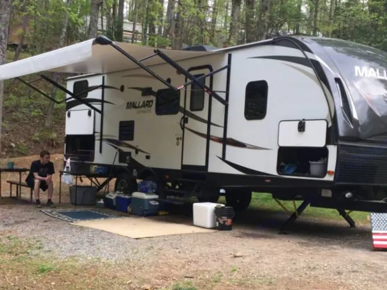 Have all the amenities of home with you camping. Trailer is a 2018 model that's 32 feet long with a big slide out to expand the living area. Lots of room to get around and not be on top of each other.Has outdoor shower, outdoor kitchen, outdoor radio speakers, and 10 x 13' mat for setting up your outdoor items. Power awning for shade.Inside has 2 queen bunks, a queen bed that can be shut off from rest of camper by doors. Fold out couch and Fold down kitchen table for sleeping arrangements.Kitchen with oven, stove, and microwave. Shower/bathroom containing power vent. Lots of windows to see out and pull down the shades at night to keep privacy or open during the day for fresh air. Heat/AC along with a central vacuum system for easy cleaning up.Enjoy your well deserved time away with this travel trailer.