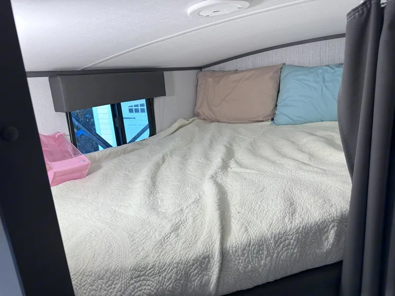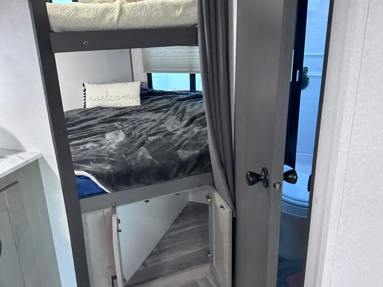 Check out our family's camper, perfectly named - Chasing Blue Skies. This 30' pull behind camper has all the features you and your group will need to make for a memorable camping experience. With the large slide out the living area offers plenty of seating for a family inside. The king size bed and mattress topper in the front make for a great night's sleep. Each of the bunks is roughly a full size bed with room for adults or kids with their "stuff" very comfortably.