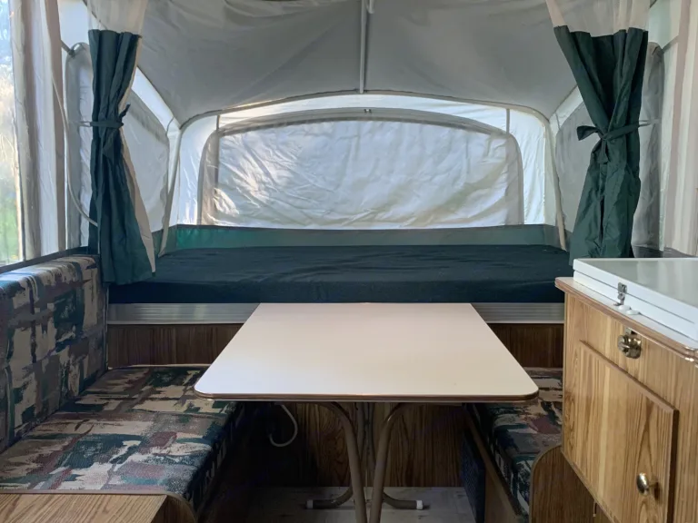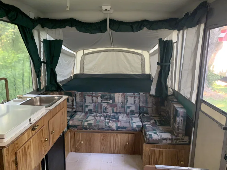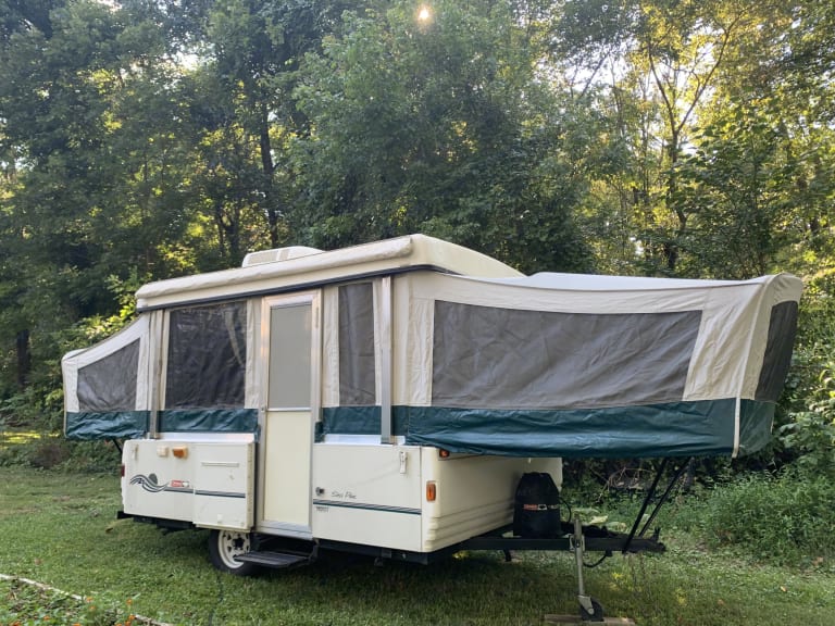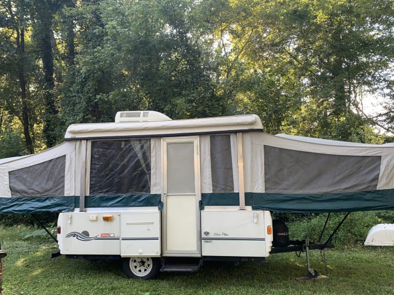 Enjoy the outdoors in this easy to set up Coleman Bayport. Two queen beds on end a single pull out bed and a table conversion to a bed. Easy to tow dry weight 1400 lbs. Delivery and set up offered.