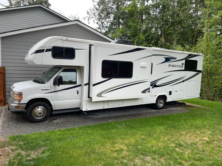 2019 Ford forester forest river 32 ft. Fully equipped with queen size bed reclining couch plenty of sleeping accommodations, bathroom has a shower/tub and sink, in kitchen stove and oven are gas, comes with microwave even a extended top for extra counter space. Has a dining set with removable table to turn into bed. Has a futon bunk bed which can turn into bed if your not relaxing on it watching tv it ihas DVD player! Has about a 32 inch tv in main space with DVD player which can be turned into radio. Has plenty of storage space. Has heating and ac, comes with automatic jacks for leveling, has 2 slide outs and a awning for coverage from the rain. Comes with everything you need for hookups at campsites too.What's includedComes with all you need plates and forks pots and pans kids trays, has kuerig, spatulas, 3 camping chairs and 2 kids chairs, has bout 5 kid movie dvds comes with mat for front porch has hand towels and towels comes with fresh sheets and couple throw blankets.RecommendationsIn the northwest you have the ocean or to the mountains camping pretty much endless ideas! We have taken it to the dunes a couple times can be used to tow up to 3500 pounds! Other things to notePets are welcome lots can be done in northwest we do have a hitch that can be offered with it. No smoking in the camper travel is endless with this vehicle. RV will need to be fueled, dumped and drained upon return of RV.
