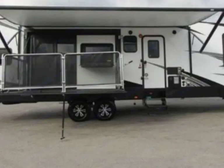 37 foot bumper pull toyhauler with a 12.5ft separate garage. This trailer also has the side patio.