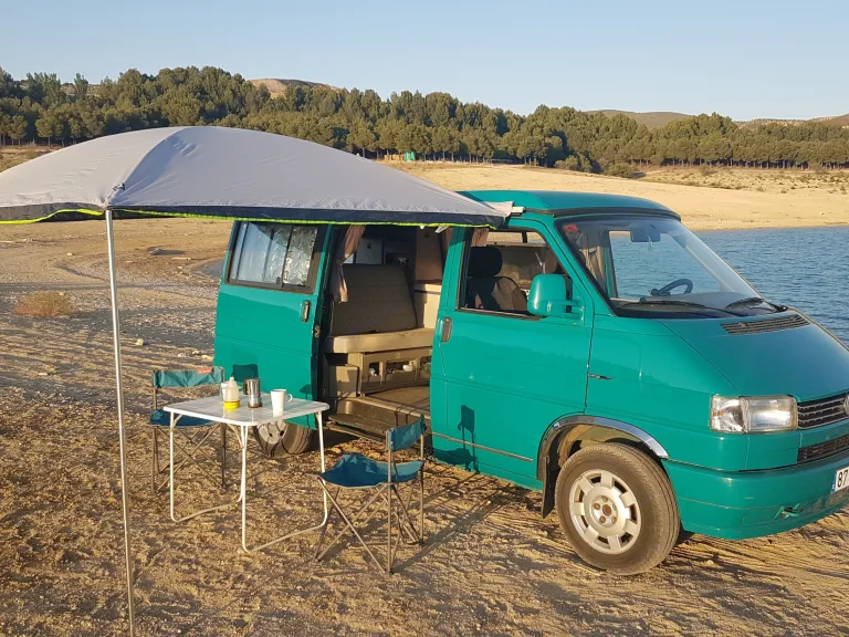 Disconnect from the world and try the "Slow VanLife"!.Lift-up roof, two-burner gas cooker, coffee machine and complete kitchenware, refrigerator, bed seat, upper bed, Airtronic programmable stationary heating, original Westfalia table, chairs and outdoor table, side awning, Westfalia control unit, 220v. socket to connect to the mains, swivel front seats, clean and grey water tank, sink and tap, sink and tap. Chairs and outdoor table, side awning, Westfalia control unit, exterior 220v. socket to connect to mains, swivel front seats, clean water and grey water tank, sink and extendable tap, various cupboards, original Westfalia curtains. MP3 radio with USB input and hands-free. Internal 220v. socket with 300w inverter. Solar panel for more autonomy, front seat covers and one-piece mat in cab. Isothermal darkening for all windows, side ventilators, etc.... Possibility of parking your vehicle (Check conditions). No problem if you want to see it before renting it or if you need any additional information.