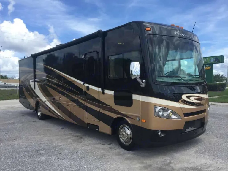 2015 Hurricane 34F class A motorhome with a full wall slide out. Its on a Ford chassis with the Triton V-10. Only 14500 miles. Coach is in excellent condition inside and out. Looks brand new. Its loaded with options including Full body paint (no decals), Onan generator, 2 roof ACs, outside kitchen (includes sink, refrigerator, and storage), outside shower, 3 TVs including outside TV, electric awning, rear view and side view cameras, king size bed, electric over head bed. Both sofa and dinette convert to beds also. Lots of outside storage.