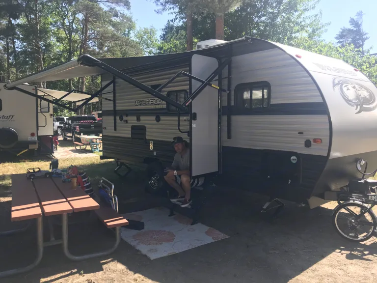 Can sleep 5 comfortably memory foam mattress on main bed. Smart Tv for those rainy days. What's includedSleeping bags if needed, includes silver wear, dishes and camping chairs. A couple sets of towels and some folding chairs for the campfire nights. Other things to noteNo smoking. No festivals. Delivery is available.