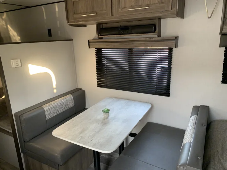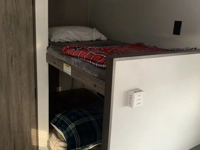 Just what you need for a weekend outdoors with the family . Small but mighty this camper comes with a queen bed and two bunks and kitchen table can be made into bed for small children. A nice warm (or cool) place to sleep ! What's included• kitchen soap