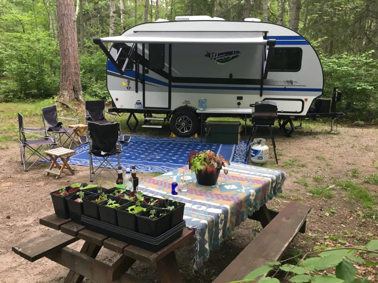 Our brand-new Hummingbird Baja is the most sought-after design of all small campers similar in size. With a rear kitchen, it is large enough to enjoy cooking inside, but super convenient to retrieve food and cookware for a campfire or grill. The kitchen has a sink, two burner stove-top, refrigerator with freezer, and a combination microwave/convection oven. Due to the cleaning and sterilizing guidelines since the Covid19 pandemic, guests are encouraged to provide all their own kitchen gear and linens. If you are unable to do that, all the pots/pans, dinner ware and cooking utensils shown in the pictures are available for an additional $50; and pillows, bedding, towel sets, and dish washing & drying towels are available for and additional $e Camper has plenty of storage for food & clothing and a short queen size bed in the font. The wraparound booth style table folds down to a bit smaller than a full-size bed for cozier sleeping or two children. The wet bathroom has a small toilet and heated shower, and it has an outdoor shower too. It has a FM/AM radio/ blue tooth/ CD player, and a TV and DVD player. The slide out provides space for a family of four. You can use the A/C and microwave with full hookups; and it has a 12Volt system, so dry camping is possible if you conserve electric and water use. Also included is an outdoor table, four camp chairs, and gas grill with attached griddle & grill utensils may be rented for additional $10/day. If you bring back the camper in the same cleaned condition it was is when you checked it out, a $50 cleaning refund will be given. You must be 25+ years old to rent and provide current driver's license and auto insurance for the tow vehicle. Your vehicle must be able to tow 5000# and you must have a 2” hitch receiver, 7way tow plug and a brake controller installed in the cab of your vehicle or you will not be able to tow the trailer. For an additional charge we will deliver, hook up, and pick up the camper within 50 miles of Grand Marais, MN. If you have any questions, please send me a message.