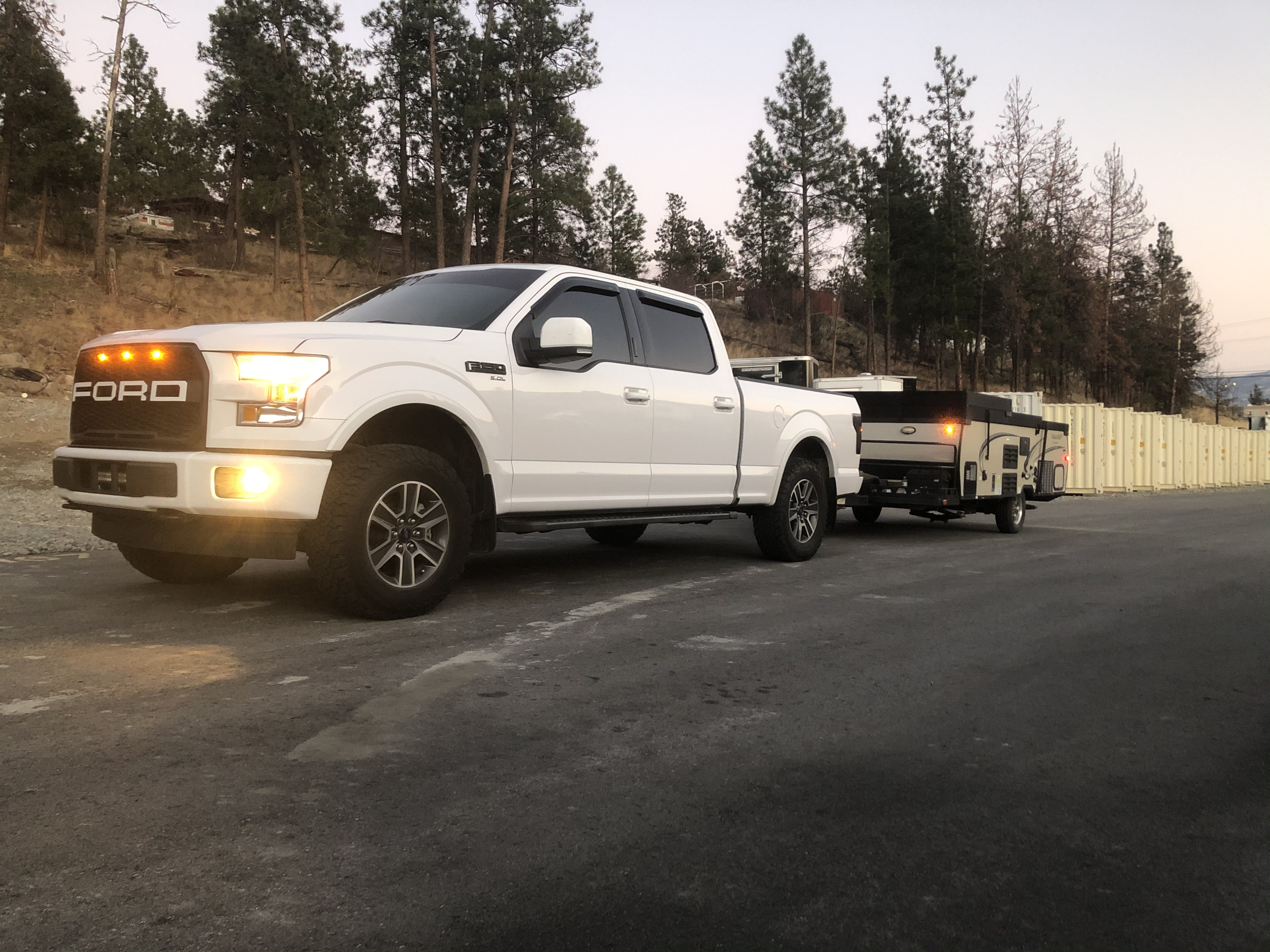 Hard side pop up with lots of head room and easy to tow with extra exterior storage. Great if you need more than a tent but not a large camper.This unit is equipped with a front open storage deck for hauling things like bikes with a built in bike lock. With full power hookups you will have access to use of the heated mattress, microwave and full heat and AC. Unit has a 3 burner stove for cooking as well as an outside attachable barbecue. This unit does not include a bathroom.https://www.youtube.com/watch?v=gHN2PnkP8fIWhat's includedPlastic cuttlery, cups and paper plates will be stored in the trailer, pans for cooking and mosquito repellent