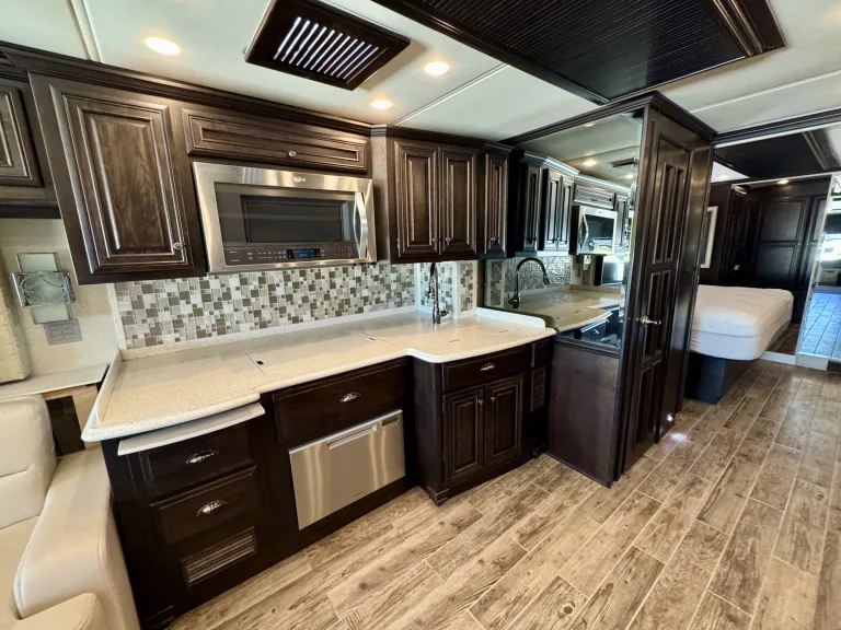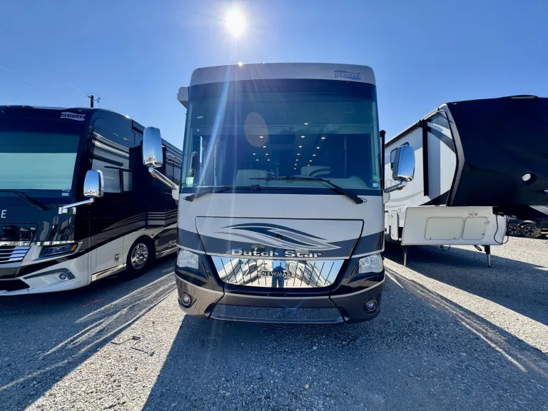 Travel in style with the luxurious 2017 Newmar Dutch Star, powered by a 450HP Cummins diesel engine on a Spartan chassis. This coach offers premium craftsmanship, featuring hardwood cabinetry, porcelain tile floors, and a residential kitchen with stainless steel appliances.