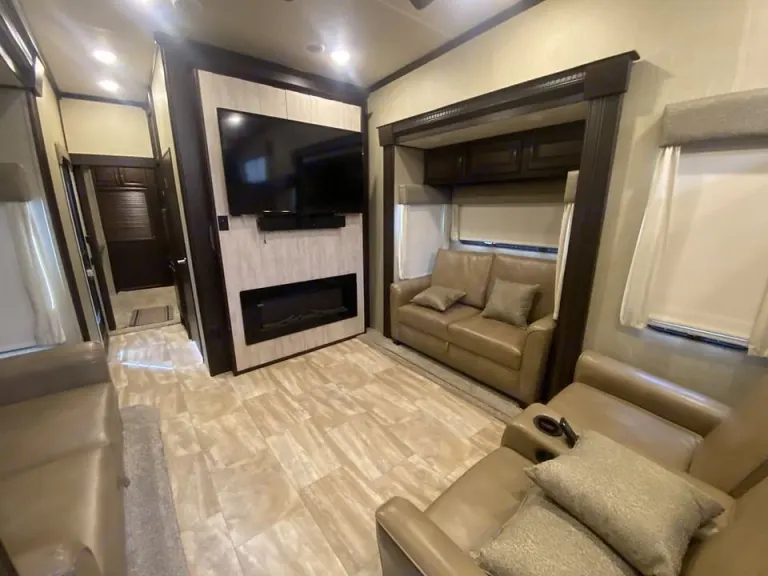 This 2019 Palomino Columbus 386FK fifth wheel is perfect for family road trips or outdoor adventures, comfortably sleeping up to six people. It features a roomy front kitchen with plenty of counter space and residential‑style appliances, a large central living area, and a private rear bedroom for great rest. With five slideouts, you’ll have plenty of living space when parked, plus a full bathroom and ample storage for gear. Equipped with everything you need for camping comfort and ready to help renters make great memories on the road.