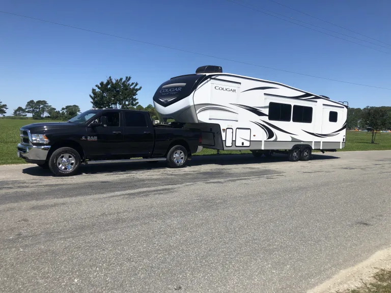 This Cougar 32BHS fifth wheel has everything you’ll need to make a trip complete!3 slideouts, for more room.2 A/Cs to keep you cool in the hottest areas.1.5 baths with the rear bath being the full bath so you can bring the kids in from the beach straight to the bath. The Tankless Water Heater means you don’t have to use the bathhouse or plan out shower time.The camper sleeps 6 comfortably, 8-10 if guests want to use the recliners and dinette.The outside kitchen means more outside fun. Included is a Weber Q propane grill that runs off the camper tanks. What's includedOutdoor Rug