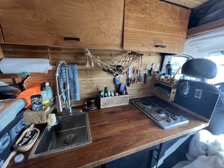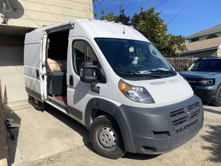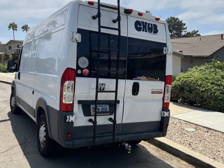 My van is a cozy 2017 Ram Promaster that has been built out for maximum comfort and function. It is the closest thing to a log cabin on wheels we could create. She has a comfy queen bed, 28 gallons of fresh water, LED color changing lighting, blackout curtains, rooftop deck, fridge, freezer, ventilation, storage, charging station and a powerful gas stove. Theirs a smoke, CO2 and gas detector to keep you safe. It has a custom sound system and a 12" subwoofer that delivers amazing audio quality for whatever you like to listen to. She is super easy to drive, has an amazing turning radius, fits in any parking spot and has a backup camera. She has all terrain tires but isn't ready for 4x4 only roads since she is 2 wheel drive. I think you will love this van as much as I do! I also leave my inflatable paddle board in the back for your ocean excursions!What's includedFresh linens, camping chairs, 28 gallons of fresh water, cooking utensils, plates, bowls, seasonings, cooking oil, supplements, pillows, blankets, candles, aroma diffuser, rug, inflatable paddle board, propane heater, rooftop deck