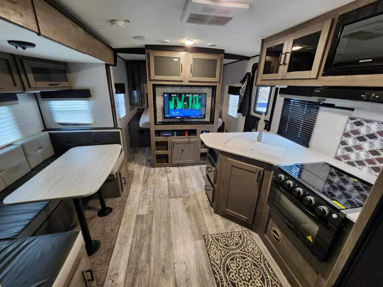 Looking for a comfy yet affordable place to stay when traveling with your family for your next trip? This 2021 heartland north trail has everything you could possibly want and need! Its clean modern look does not go unnoticed. This travel trailer is the perfect size for wherever you may be going, from the local campgrounds tomm or even a trip out west. This 27 ft trailer includes sleeping areas for 8 adults one of which is a memory foam king size bed located in a private bedroom. The U shaped dinette is perfect for board games with the kids when the rain comes at unexpected times or playing cards with friends while enjoying a few cold beverages. This also has two bunks that are oversized, perfect for the kids and even enough room if they bring a friend! The bathroom in this spacious, has full shower, toilet and sink and all toiletries and towels for use are included in the stay (one less thing to pack)! The camper has a full kitchen for cooking inside and also an outdoor kitchen for cooking outside while enjoying the beautiful weather as well! Outdoor shower on this camper too which has come in Very handy for those sandy feet after a day at the beach. So many amenities and so many memories to be had. We would love to host you! What's included• linens for all beds