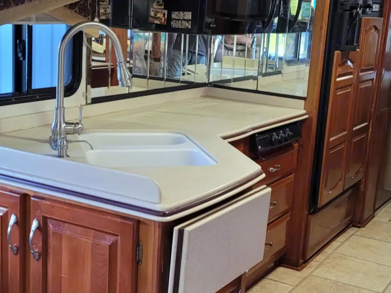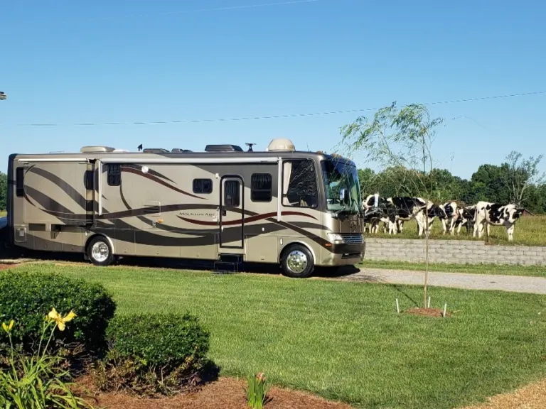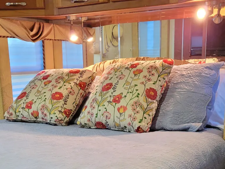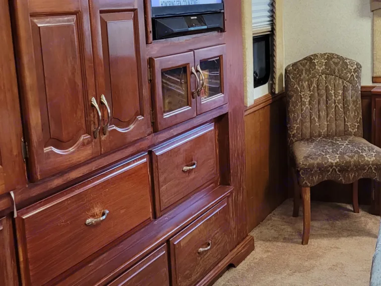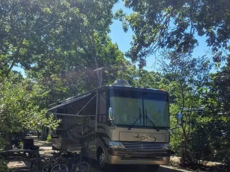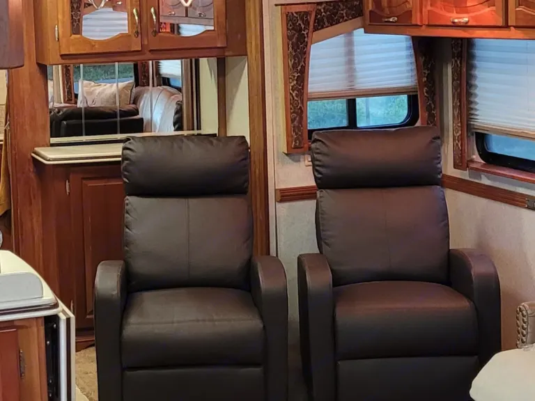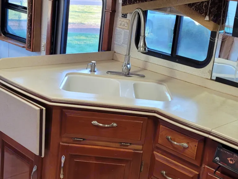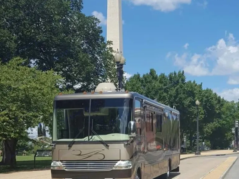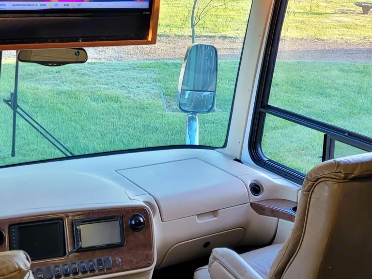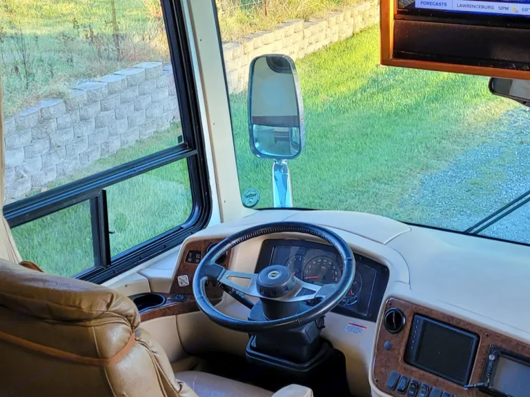 This Coach is first class...enjoy driving, while passengers are able to go to the refrigerator, bathroom or watch TV..automatic leveling jacks make for easy setup...3 slide outs give ample room inside..very well maintained and clean. You'll enjoy going down the road with the view from a full windshield. Sun glare...no problem with the power shades for both driver and passenger...it'sthe best seat in the house to start enjoying your time away!