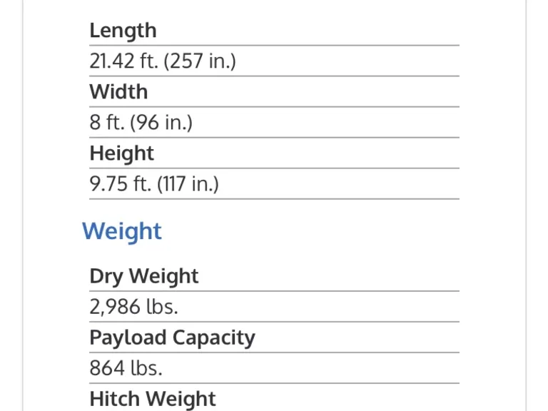 - Hitch weight: 385 lbs