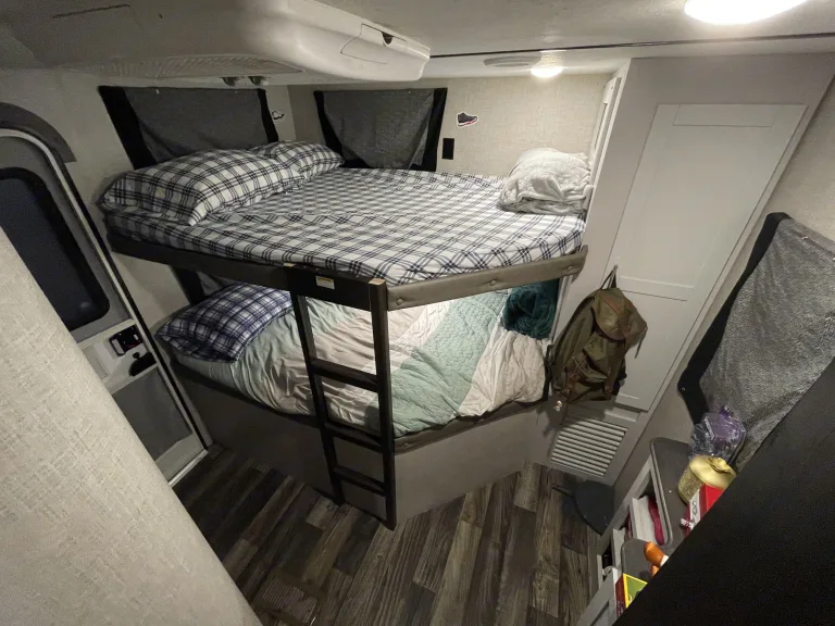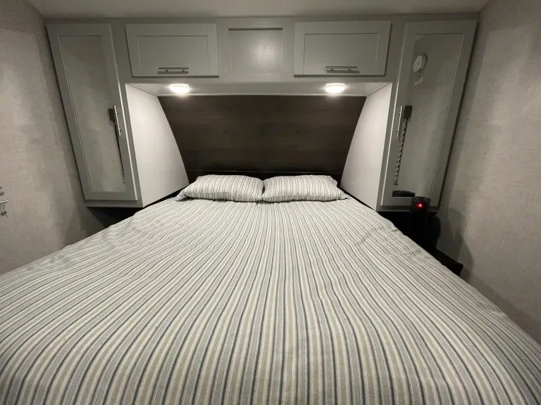 This is a charming spacious RV perfect for small families or couple travelers! It is a modern 2019 bunkhouse model featuring a master queen bedroom with full shower and a second bunkhouse bedroom with half bath. Kitchen has a gas stove top, medium sized fridge with small top freezer. Nice Island kitchen with full sink. Furnished with a full sized pull out couch, 32" TV in living area, nice sized dinning table, and outdoor kitchen. RV site is a full hook up. Water, electricity, and sewer included. RV is fully winterized with a furnace that runs on propane. This RV park is family and pet friendly with a quiet environment. Great home on wheels! *NO Delivery OR Pick UP currently*What's includedSome cookware, fresh linens/blankets, towels, 2x camp chairs, plastic utenils/paper plates.RecommendationsClose to Sassafras Mountain, Chimney Rock State Park, and other wonderful trails nearby! Only 15 minutes from downtown Greenville! Other things to notePets are welcomed no more than 35lbs and must be house trained. Children must be supervised at all times and abide by the RV park quiet time of 10pm.
