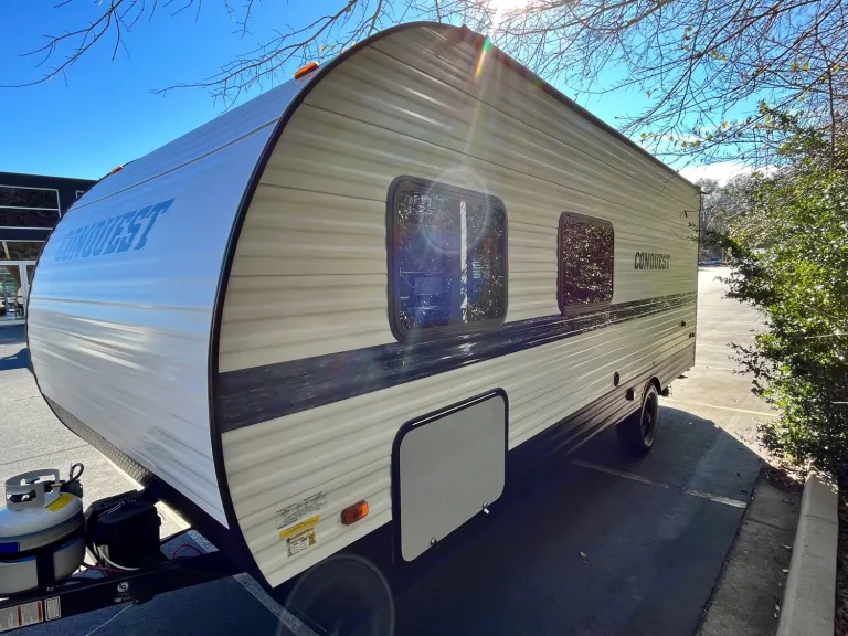 LP Tank 20 lbs.What's includedIncluded by request are linens, sheets, blankets, towels, and pillows. We provided dishes, silver ware, pans, utensils, two lounge chairs, TP, and paper towels. We have a fire-pit and a black stone griddle at an extra charge.RecommendationsWe recommend taking the setup stress away. Let us deliver and setup within 75 miles of Greenville SC. Camp at Paris Mountain, KOA, Table Rock, Lake Jocassee, Lake Keowee, Lake Hartwell or many other local campgrounds around the area. Other things to note1. This may be stupid to some but important to us. No pooping in the camper please. Campgrounds have toilets and it is very hard to maintain and keep an RV fresh when folks poop in it.