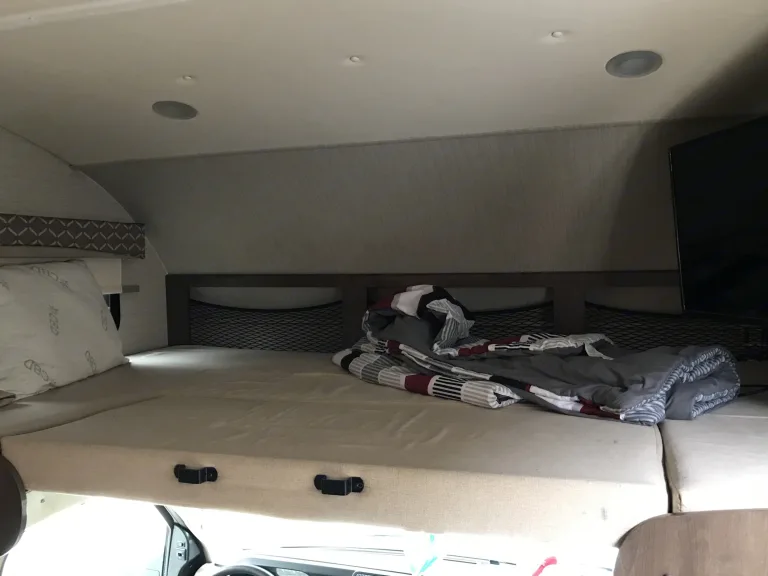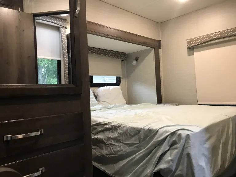 Here’s a great way to travel germ free and experience the simple life RV’ing offers! Sleeps 4 adults comfortably OR 2 adults and 4 kids! 1 queen bed in bedroom slide out, 1 queen size bunk over cab and dining area can be converted to a sleeping area if desired. Basic dinner ware, utensils and cookware provided as well as 4 camp chairs and a utility table. Just bring your sleeping bags (or bed linens etc) and you’re ready for a get-away! Also has an auto-leveling jack to take the work out of getting setup just right! Side view mirrors and a back up mirror making maneuvering stress-free.Feel free to email me with any questions. What's includedPlates Serving of 4