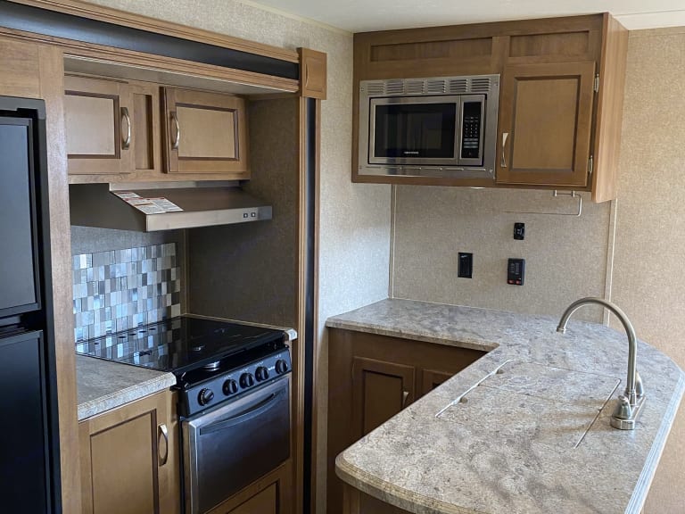 Like new travel trailer with room for everyone. Has privacy with 2 bedrooms. Outdoor kitchen and plenty of room in the kitchen inside.Other things to noteWe do not provide a generator.