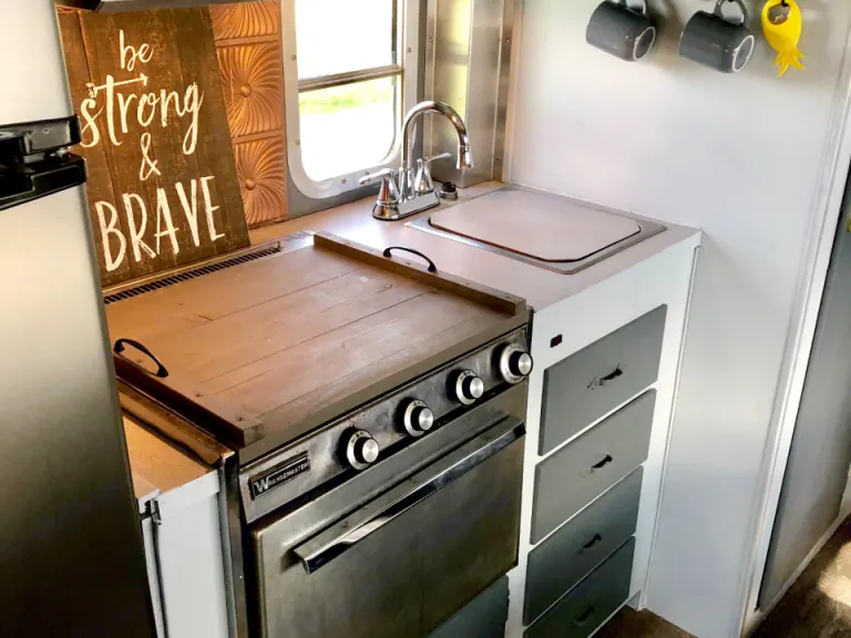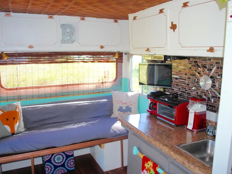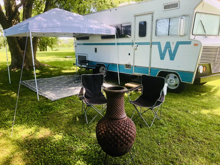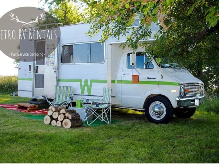 Step back in time to the 70's with Winnie! This is a stationary RV. You cannot drive it. We deliver it to the campground of your choice and set it up for you. Both campers have a toilet and sink, no showers as most campgrounds have them. We also have a modern feel 1973 Brave camper that sleeps six!