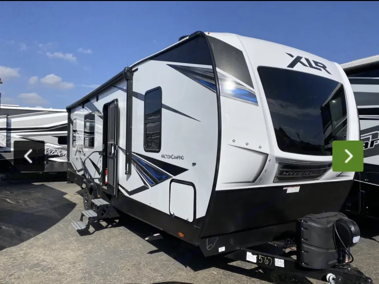 This trailer has a great layout with large pop out kitchen and lots of counter space. A large TV is mounted on the forward wall out of the way, in a perfect location. Main bedroom has a memory foam queen, 2 wardrobes, and a huge tinted front window. Large fully equipped bathroom with lots of storage. The living area has 2 swivel recliners and a full 6 seat dinette. Added coat racks and drawers for the kids clothes. (No need to have luggage laying out taking space) there are double stacked electric drop down queen bunks. The rear ramp is equipped with a quick fold out playpen patio(with folding chairs). This is a toy hauler which will fit a side by side. Some amenities, include a 4K generator, 100+gal. Fresh water, gray 50, black 50, a large awning, full exterior lighting, and speakers, outdoor shower, 40gal. Gas fill station, dual propane bottles, don’t forget the patio, that’s my favorite.