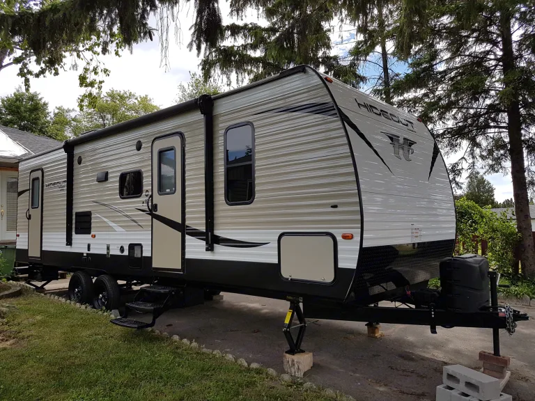 This is a well equipped trailer that sleeps up to 10 (6 adults, 4 kids comfortably) with 1 queen bed, double bunks, table and sofa fold into bed. Some of the features includes are heat,A/C, power slide out, power awning, Indoor/outdoor speakers, Bluetooth capable stereo, tv, DVD player, double sink, Full Fridge w/freezer, Huge pantry/storage closet, complete bathroom with tub style shower (Bathroom has direct access from outside so you don't have to go through trailer to get to it.), stove with oven, microwave, outdoor shower and even a central vac for easy clean up! We also provide Pots, pans, plates and cutlery and many more camping items so you dont have to worry about what to pack. This is a fantastic trailer for large/multiple families•Delivery is available