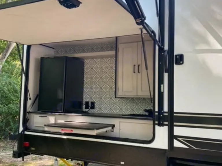 The Mallard - Richmond Estate is a very comfortable and relaxing camper. It has a roomy-kitchen and dinning room. There is also an outdoor kitchen area with a dorm-size fridge. The outdoor kitchen is equipped with a sink, fridge, drawers, and an outdoor propane grill! The couch pulls out to fit one or two for sleeping. Also, the table lets down into a full size bed. Smart-Televisions with Blue Ray players (living and kids/secondary sleeping area) and stereo (Bluetooth capable), outdoor speaker, small ice maker, kitchen utilities are available, complete bathroom with shower. Master bedroom is a camper King bed, secondary/kids sleeping area is equipped with two separate beds, plus two small theatre seats (w/cup holders) that also fold out to smaller beds. Please, nothing other than camper toilet paper in system (no feminine products), you do not want that experience, as we don't either. Be sure to coordinate your departures for checkout with the camper is no later than 12 p.m. your last day.We hope you enjoy your stay and make plenty of memories with your family!What's includedChairs (adult and kid)