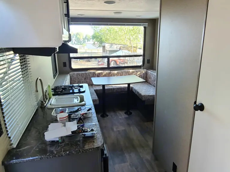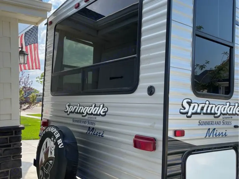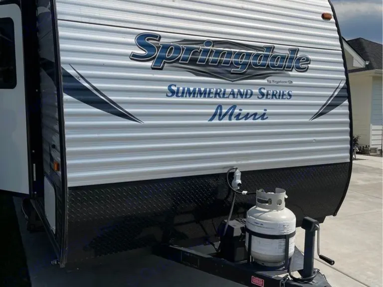This is a 2017 Summerland Mini, at only 21' from tip to tail, this lil' gal is perfect for camping in spots the big campers can't get to! At only 4400 (loaded, wet) you can tow this with your SUV! It's well appointed with a queen bed and huge view windows in the back. Park this lil' gal near a view and wake up and have your breakfast with a stunning view. The windows allow for wonderful nature light. You'll be shocked at the amount of space in such a smaller camper. Awning, fridge, hot water, furnace, it all works like a charm.Sleeping: there's a queen up front and a large dinette that can convert to a bed in the back. You can sleep 4 adults if needed (but let's be honest, you don't want 2 full grown adults on a dinette- throw a kiddo or teenager back there or let 1 adult have it to themselves).It's easy to tow and ready to go camping! Just bring your own beer and bedding!What's included2x camp chairs, pots & pans, silverware and cookware. Coffee maker. Other things to noteJust BYOB, bring your own bedding (and beer!)