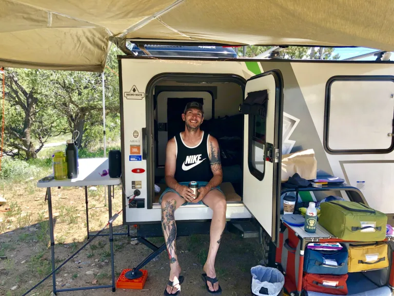Take this easy towing camper down some of the most beautiful stretches of the Pacific Coast Highway (Highway 1). This camper has everything you need for a long weekend or even a multi-week road trip. With a Dometic fridge and stove slide out (outside), solar connect (with solar panel), air conditioning, tv, plenty of storage, a foxwing awning with side panels, electric jack, and so much more. It features a queen size fold down dual futon which ecompasses the entire interior of the trailer. On the roof, you will find an accessories rack with a kayak/canoe carrier.
