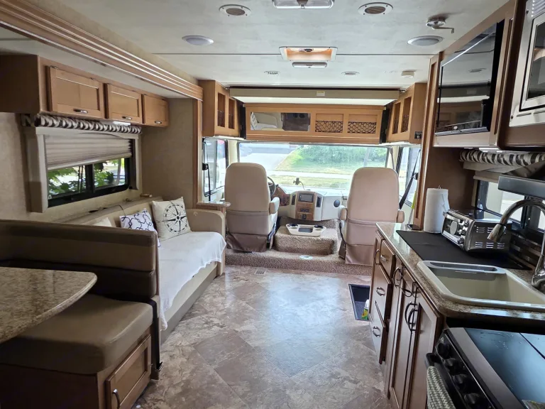 Experience the freedom of the open road in our beautiful, modern 30-foot Thor A.C.E. Class A motorhome – perfect for families or couples looking to explore in comfort and style. With 2 spacious slide-outs, this RV opens up into a roomy living space that feels just like home.