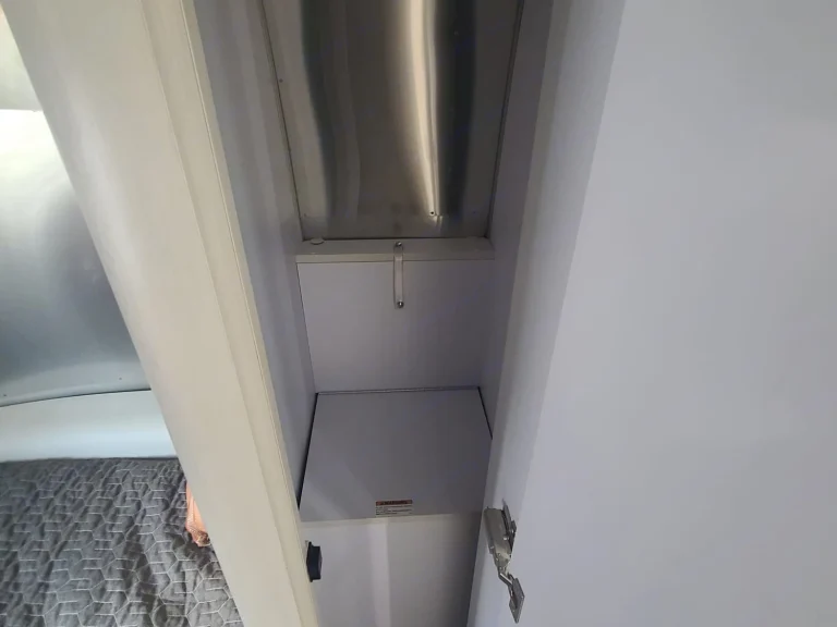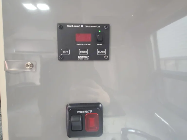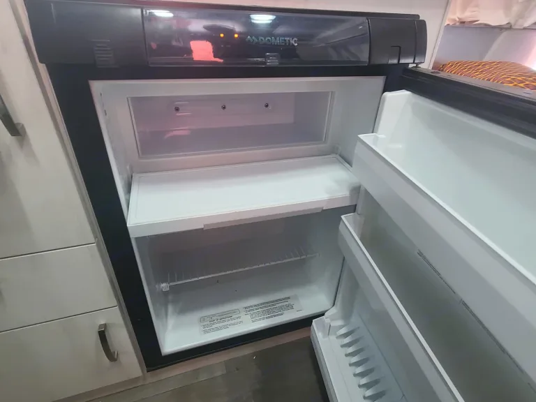 * Three-way (110V, gas, 12V) fridge/freezer.